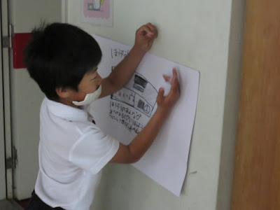 1.2年生が生活科の学習で、学校探検をしていました。2年生の人が1年生の人を案内して、学校の教室や施設の説明をしていました。めったに入れない校長室にもお邪魔しました。