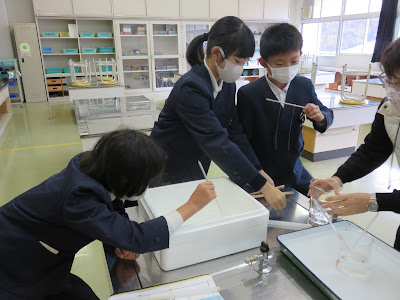 「宝石をつくります。」と言って見せてくれました。ミョウバンを使っての実験のようです。